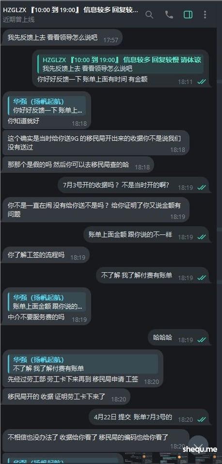 护照组那边问题没处理完问题删除聊天记录,心里没有鬼为什么删除聊天记录?护照组工作人员说2024年4月22日给我提交办理9G记录,《全款支付》 护照组只给出一份办理9G的单据金额为18590p 账单日期是7月3日 账目组说办理就9G只有一张45000P的首付和40000P的尾款 ,不承认有18590P的支付账单,不知道哪个部门在撒谎,