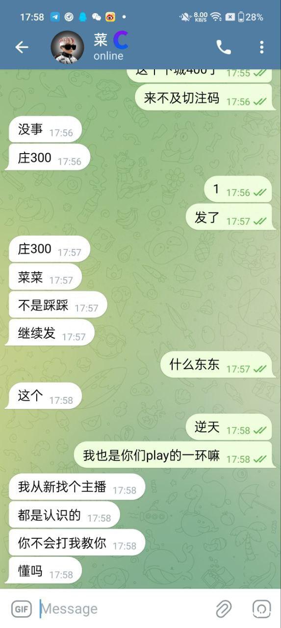 (声明本人不是傻逼从来没信过他说的一个月一百多万,只是钱在他那一直陪他演戏,只为了能拿到我的辛苦费,现在佣金和输钱他全都不给)