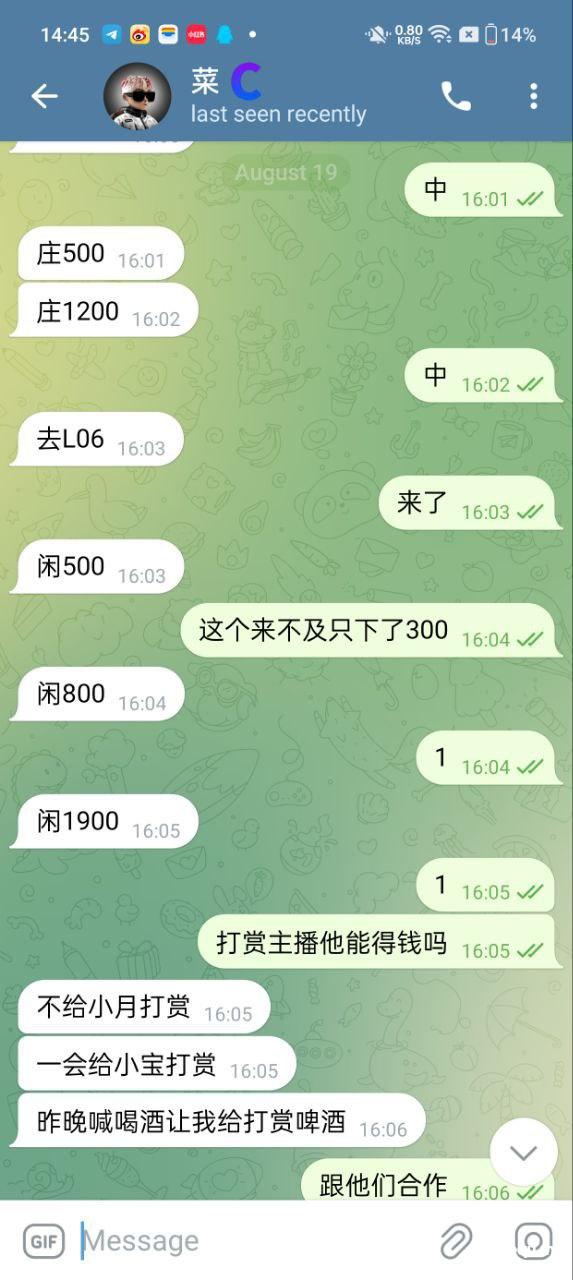 ​后面这会说输了赔我(此时赌博已经赢了),说是反正包赢的(赌之前没说半句,赢了才来说是他和主播合作,所以钱归他)