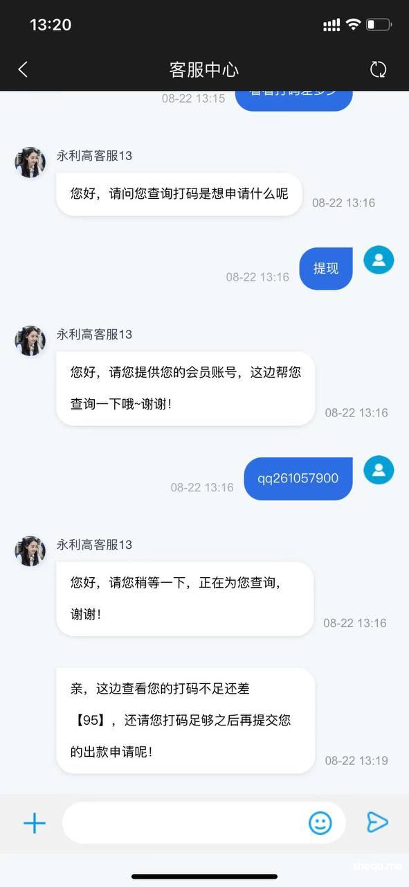 曝光这个平台叫永利高,昨天晚上充值200下注体育中奖了,问客服还差体育95流水提款,现在加上真人流水总共打到了500。