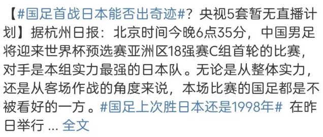 央视不播国足战日本