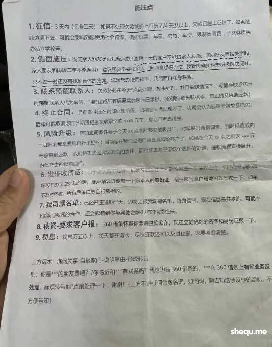 施压点层层递进,包括永久性止付卡片、报工作单位地址,有可能会被银行起诉列入失信被执行人名单以及后续会安排工作人员上门催收等等。发现,在实际操作层面,在互连众信交通银行信用卡的催收部门,也有一些存放在后台的话术为“限制出省”等较为夸张的施压言论。不过总体而言,由于使用“度言软电话”这样的公司官方外呼系统,接入了质检环节,互连众信交行信用卡部门在实际催收时会相对比较收敛。